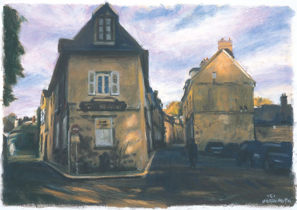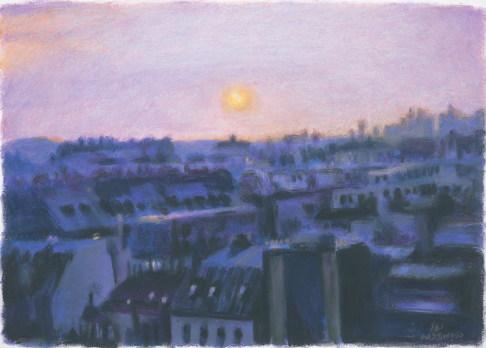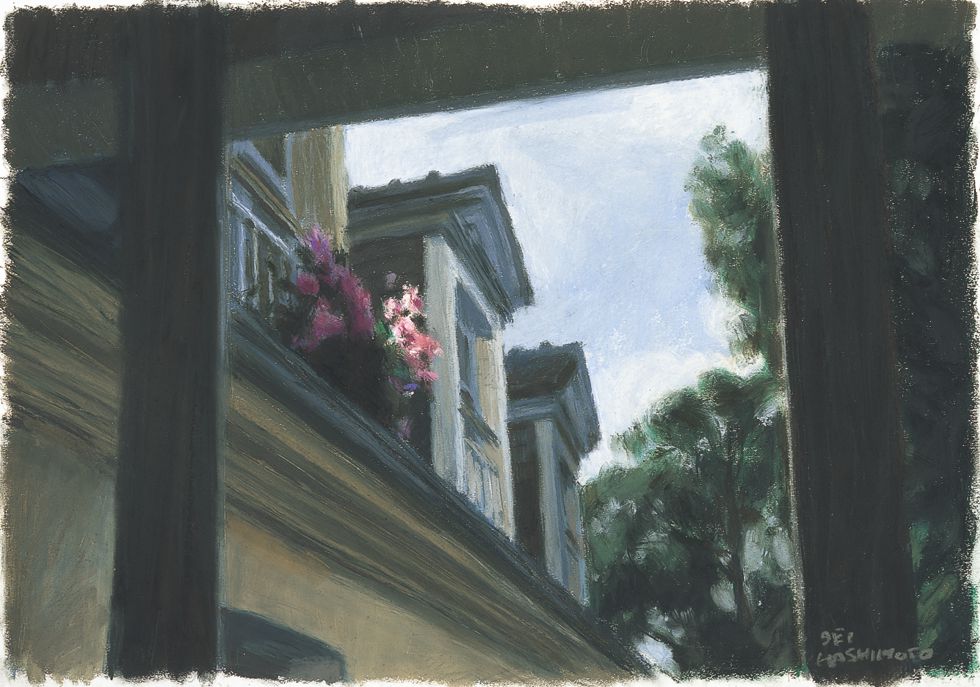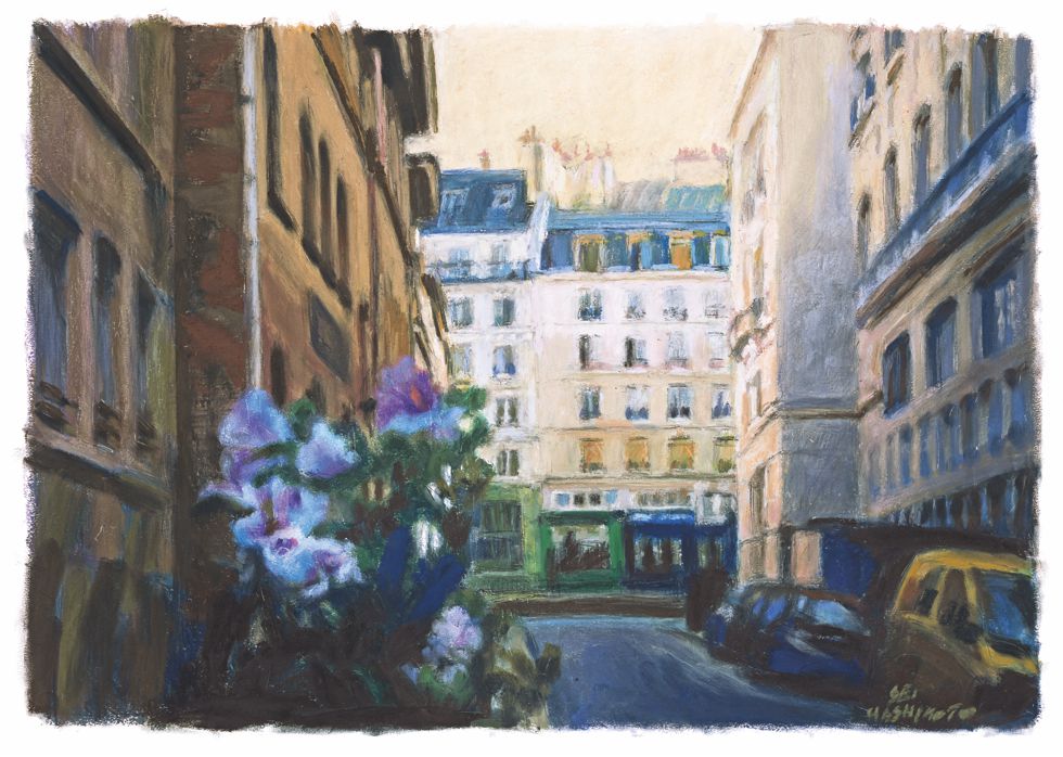 加えて、ハシモトがパステルで描きだすパリの街角には、世界で最もミニマルな詩の形式である俳句において立ち昇るような、核心的イマジネーションの美を楽しむことができます。